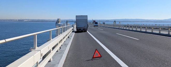 アクアラインの途中で車が故障しました。助けが来るまで3時間も待ちました。三角停止板があってよかったです。…